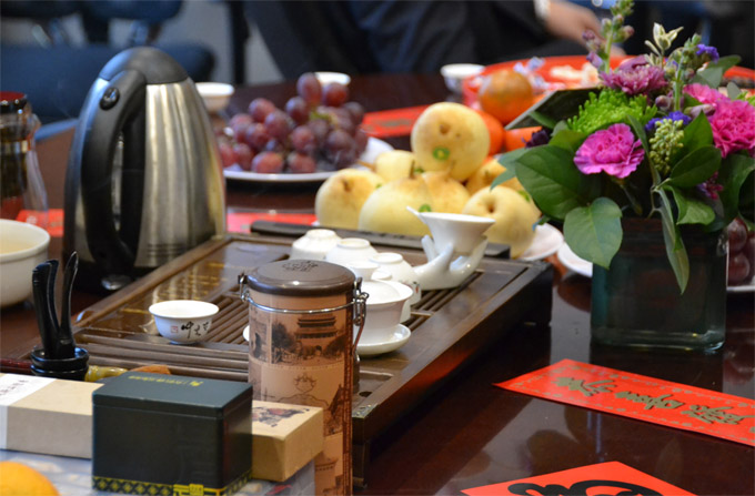 与侨界众多传统宗亲社团的古色古香不同,福建商会现代化的会所,年轻一代侨领、实业家会员们的热情好客与爱国精神,让洪磊总领事一行印象深刻。在贵客尚未抵达之前,商会成员们就烧起了印尼檀香,泡好福建功夫茶,准备精美糖果点心。