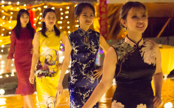 派对的高潮阶段是压轴出场旗袍秀。洛约拉大学中国学生学者联合会的全体成员在主席张越的带领下,身着各色旗袍一一亮相。美轮美奂的旗袍,再加上民国旋律的伴奏,整个走秀独具中国特色与美的享受。