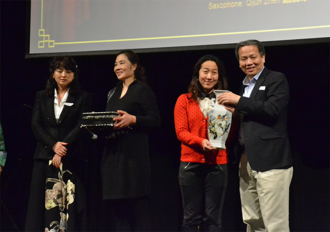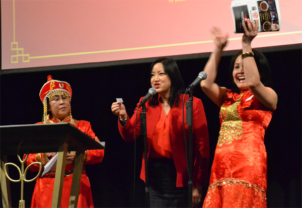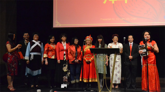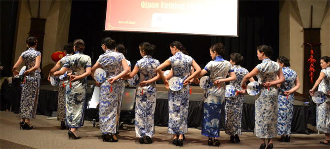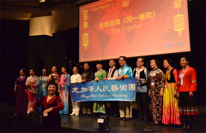 饺子宴的第二部曲,是精彩的文化艺术表演。芝加哥“麦霸”首选之乐透KTV两位经理,首先为大家带来一曲喜庆激昂的《开门红》,全场掌声雷动。三位小朋友精心编排的相声《女汉子》,说唱表演有板有眼,笑点不断。由旗袍爱好者带来的青花瓷旗袍秀,则在悠扬的乐曲中演绎东方女性的婉约与典雅。歌喉嘹亮的芝加哥“蒙古一哥”郭尚与萨克斯演奏者甄启军,联袂带来一曲《天边》,再现风水草低现牛羊的内蒙广阔草原。耿晓钟用中国特色民间乐器葫芦丝演奏的《月光下的凤尾竹》,带来云贵少数民族的浪漫风情。文艺表演的最后,则是新近成立的芝加哥人民艺术团闪亮登场,大家在《同一首歌》熟悉的旋律中重温春节的美好记忆。
