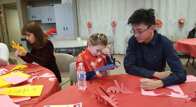 来自中国的小留学生们担当义工,与会华洋来宾们携带罐装食品捐赠给西郊社区慈善机构,参与包饺子比赛,剪窗花、猜字谜等春节游艺,欣赏青花瓷旗袍秀、中国民乐演奏等精彩节目,大家一起品尝中国饺子,精彩丰富的活动,既然弘扬中国传统文化,又展现出华人支持慈善公益的积极正面形象。