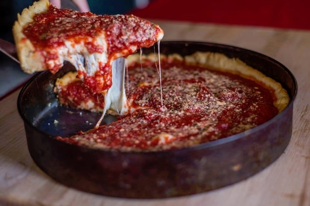 1943年,如今远近闻名的深盘披萨开始出现在人们餐桌旁,当时主要供应的地方并不是饭店而是酒馆。到了1950年代,披萨才真正开始流行起来,1953年的芝加哥每日论坛报还记录当时披萨成为潮流的历史。