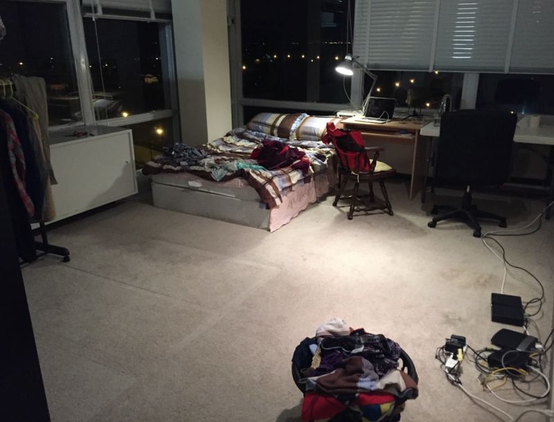 客厅空间开阔,可以完全看到湖景,且安静。附送:房屋保险,客厅和厨房的屏风隔断,部分家具以及洗衣卡。PS放假每年都在上涨,但我们因为住的时间长,所以保持去年的价格,月租:$480(不含电,网)。电费网费三人平摊,每人大概30左右。