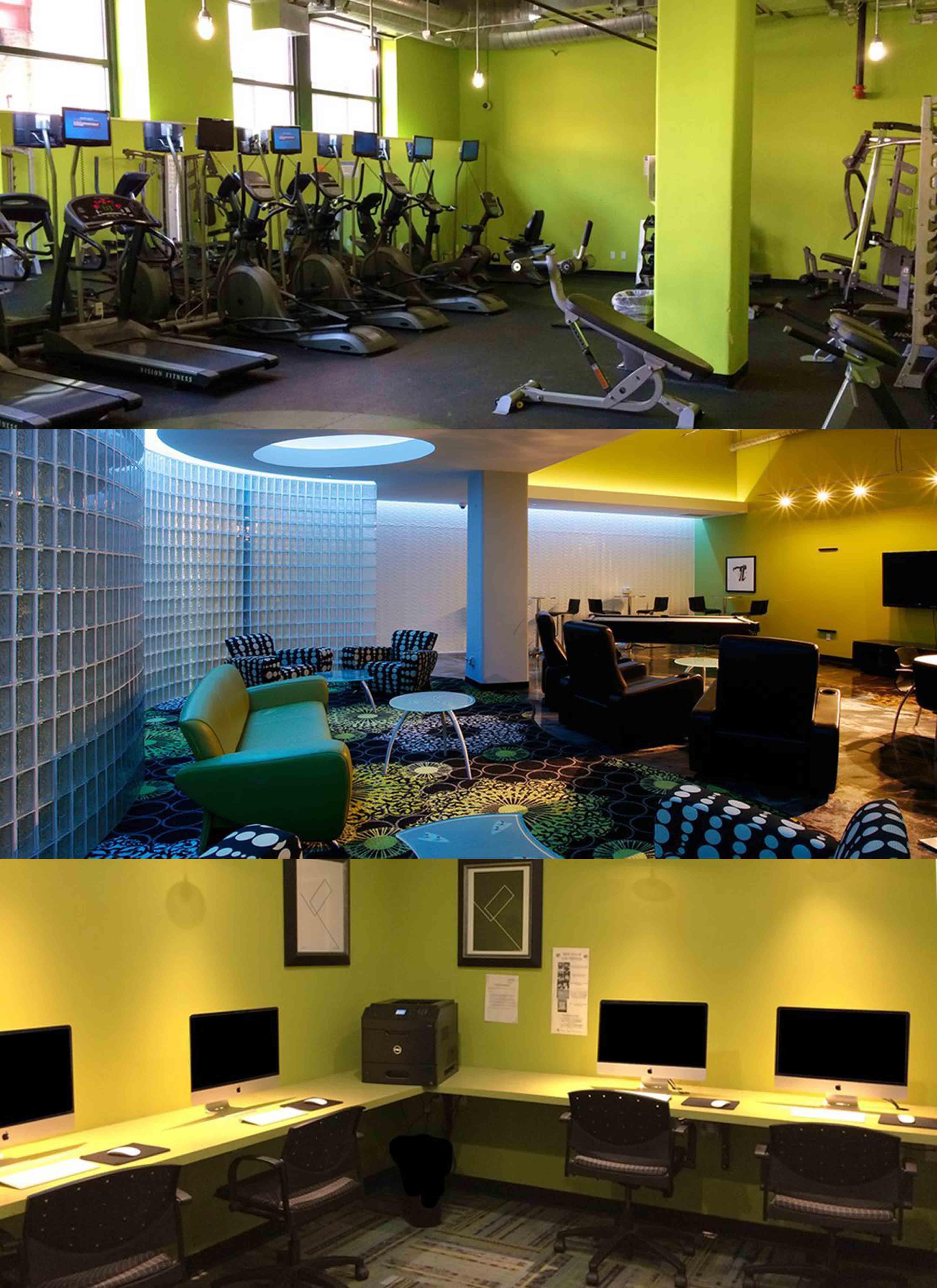 ▲24小时保安,刷卡入门入电梯,公寓自带洗衣房,健身房,苹果机房(有打印机可用),自习室,娱乐中心等等。室友都是学生,人非常好。