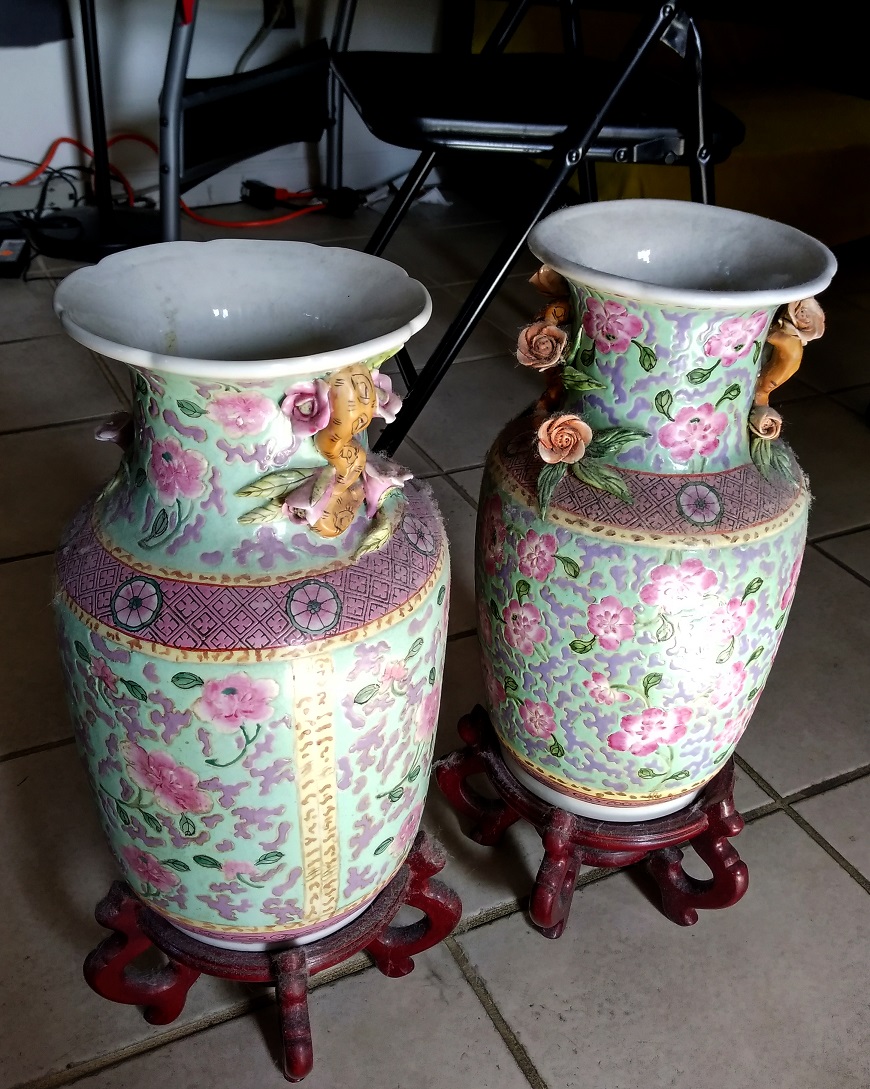» 一对漂亮中式瓷花瓶带架共10美元,几乎算白送 (已售SOLD)