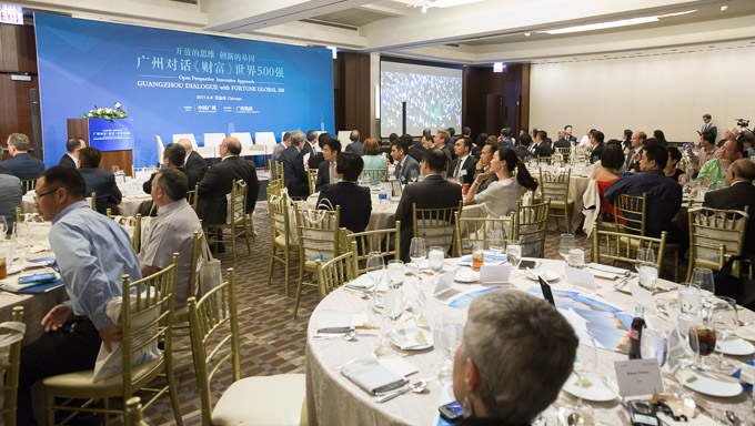 在主旨推介环节,广州副市长蔡朝林重点介绍了广州作为全球商业与投资目的地的优势。蔡市长表示,广州是中国南方重要的海、陆、空交通枢纽,为全球投资者创造了便利的条件。同时,加上城市近几年的政策导向与产业升级换代,广州已经成为了如微信,亿航,科大讯飞等多家高科技公司的总部,被福布斯中国连续多年评为中国最适合投资的城市。蔡市长欢迎芝加哥各企业,学者,政要参加今年12月在广州举办的《财富》全球论坛。