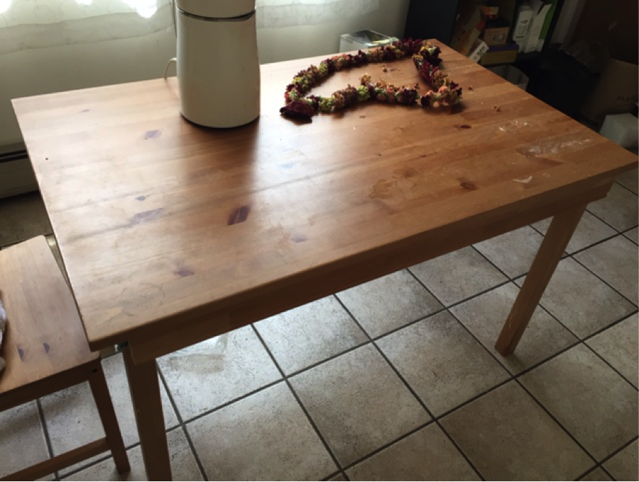 #2. 20刀。木质餐桌,另外配有两本木质椅子。。和桌子是配套的,只有两把椅子!!