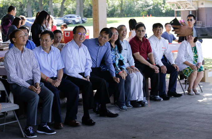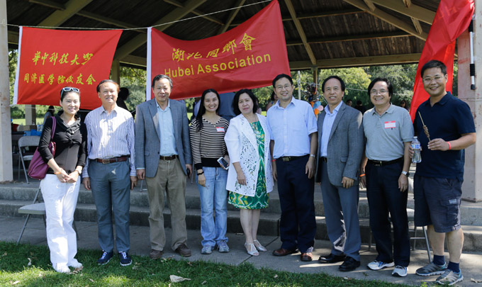 中国驻芝加哥总领事馆总领事洪磊、副总领事余鹏,湖北同乡会会长黄正东律师,华联会副会长何大权,美国华人海外交流协会和芝加哥五邑同乡会(两会)会长赵健航,科工专会长梁琨,美国中西部湖南同乡会副会长蒋保国,武汉大学校友会前会长曾左韬,华中科技大学,同济医学院校友会会长陈柏好,以及阿冈国家实验室的华裔科研人士、来自湖北的年轻一代留学生、工商界成功人士都欢聚一堂,共续乡情的纽带。