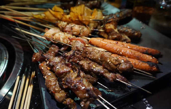 东北烤串类,所有羊肉、牛肉、海鲜,均是选用上品。羊肉串、牛肉串、王中王、羊腰、鸭下巴,小龙虾、辣炒蚬子,鸡心、鸡胗、鸡骨架,所有烤串都是依照正宗东北风味秘制,炭火烤制,香辣扑鼻,令人食欲大开。大家也许不知道,豆角、茄子、玉米、豆腐卷、大蒜等各类蔬菜也都可以烤着吃哟。第一烤场,烤的就是特色!