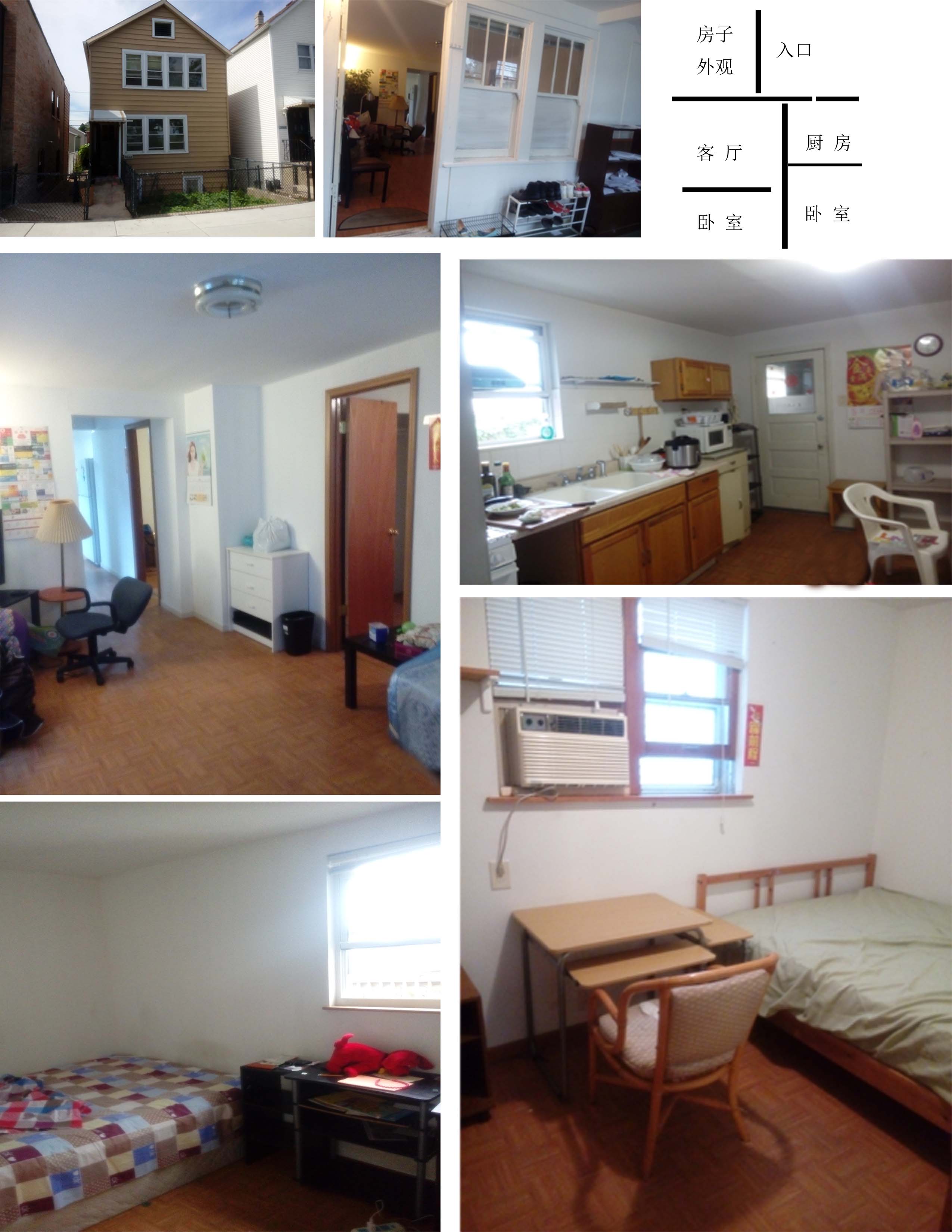 房屋位于BP区28街独栋house,一层三室一客厅一餐厅一厨一卫,整租分租都可以,所有家具一应俱全,拎包入住,内设暖气,空调,免费洗烘衣机,前后院,门口免费停车,正门口有二个公园,健身带小孩子玩方便.步行10分钟到cermak超市,CVS药店,Mcdonald,walgreen,沈阳菜馆,北国,新开的韩式烧烤,大东北等中餐馆。