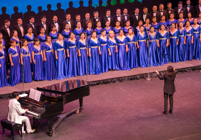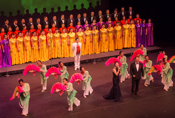表演期间,芝加哥华人艺术团合唱队的成员们为大家带来了多首经典剧目,在和指挥王一,钢琴伴奏武航建以及希林青年舞蹈班的配合下,为大家带来了《传奇》,《You Raise Me Up》,《回娘家》等多首脍炙人口的歌曲。
