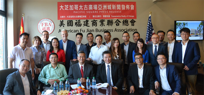 10月9日,太古广场开发商、联丰地产在芝加哥福建商会举行新闻发布会,宣布了太古广场开发项目的好消息。联丰地产总裁倪举凌(Eddie Ni),芝加哥福建商会会长郑时坦,芝城华商会会长徐佐寰,以及星光超市、香港超市业主,高宝银行、国泰银行代表,以及大芝加哥地区众多华裔商界精英出席当天的活动。芝加哥福建商会副会长黄晖主持当日的新闻发布会,联丰地产总裁倪举凌,以及太古广场建筑方ArchDMC国际公司建筑设计师郑皓向大家介绍了太古广场开发项目的详情。