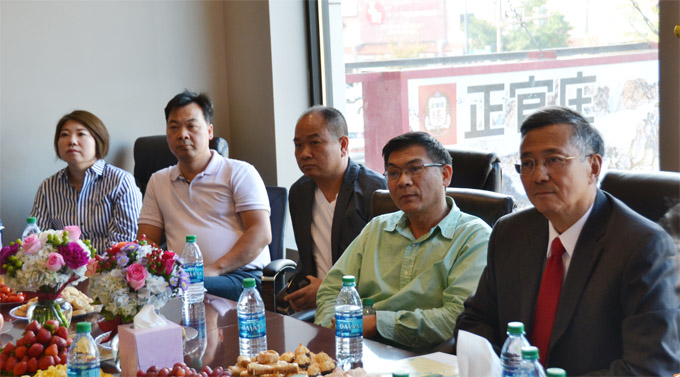 各界商家代表出席,左起:高宝银行代表Vicky 星光超市业主梁先生,香港超市业主Gary Chen,福建商会会长郑时坦,芝城华商会会长徐佐寰