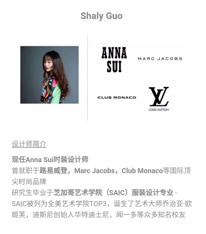 王一的两位优秀服装设计师朋友Shaly Guo 和 Rong Zhang会为王一演唱会提供演出服,设计师和她们的设计在纽约时装周精彩亮相,在欣赏芝加哥邓丽君歌声的同时,您也将近距离欣赏到华美精致的时装秀服饰~