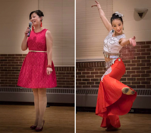 芝加哥著名主持人郑小川女士(左)和叶青舞蹈团刘瑞琪的独舞《傣家小妹》