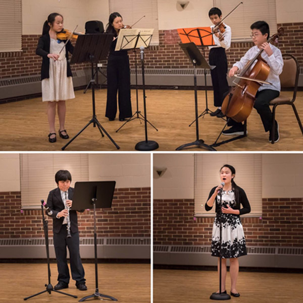 北郊社区青少年们也展示了他们的才艺,张洁熹表演了双簧管独奏,Niobe;林丽安表演了独唱"My heart will go on";Xiaoguo Burton 老师带领三位小朋友Iris Li, Eric Liu和Michael Cui表演了莫扎特四重奏,"Divertimento in D Major for String Quartet by W F Mozart"。