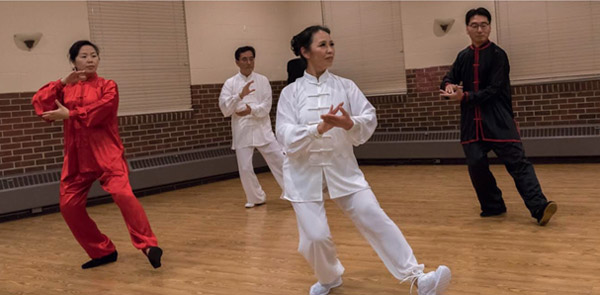 爱培健康生活教育中心太极班的同学王弘,王黎,徐向东及刘亚亚表演了太极二十四式