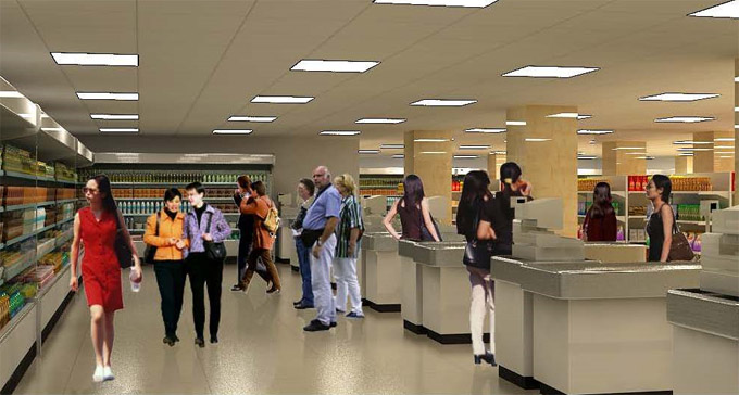 宏益广场一楼,将为好运来超市,总面积4.3万平方尺,预期2018年底、2019年年初开业