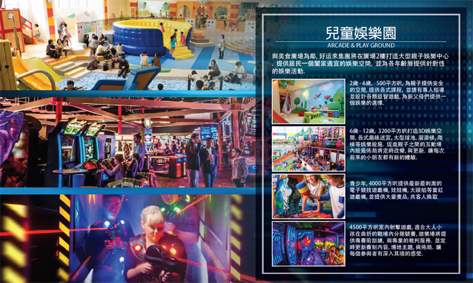 好运来超市二楼,还将包括美食广场、儿童娱乐园。美食广场总面积1万多平方尺,设23个摊位,将引进中日韩等亚洲特色小吃,可容纳400人同时就餐。儿童游乐园将是大型亲子游乐中心,总面积超过1.2万平方尺,将为2岁至12岁的儿童提供各种游乐设施、亲子活动场所,适合青少年电子游戏,还有老少皆宜的室内射击游乐场。