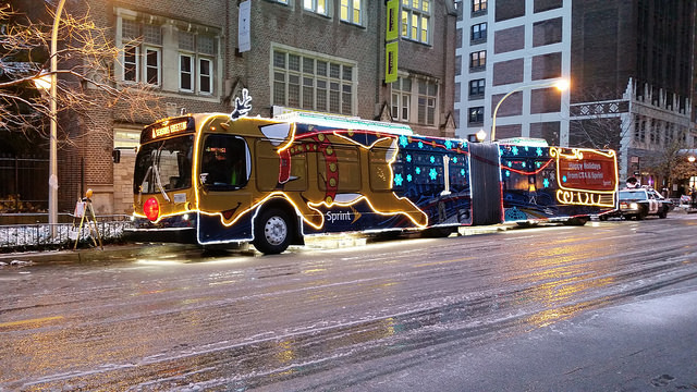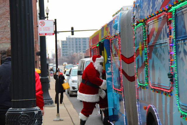 和巴士又将驶上街头将节日的问候带到芝加哥市各个社区。今年的“圣诞专列”会分别在芝加哥地铁和公交各线路运行,每辆车都配有绚丽的圣诞节装饰物,无数的节日彩灯,还有圣诞老人和驯鹿沿途陪乘客一起过节。
