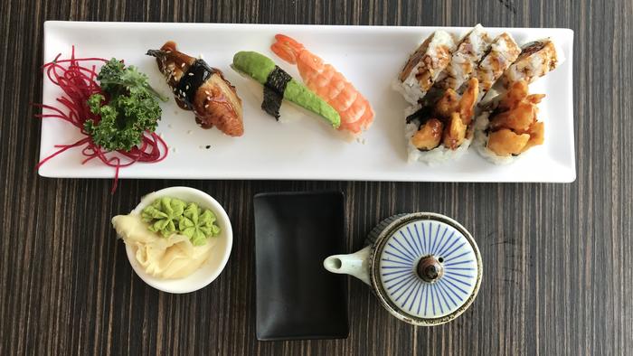 这家位于Edgewater的日本泰国融合餐厅,每天在下午3点前供应价格实惠的午餐特惠,一份精选寿司组合。顾客可以选择生鱼片或者熟食寿司,组合里还包含一份味增汤或新鲜沙拉。