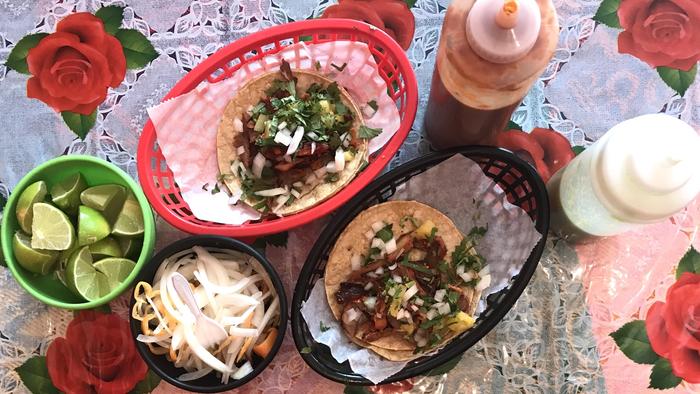 一走进Los Barrilitos映入眼帘的便是旋转中的巨大烤肉架。这里的墨西哥玉米饼都由这些外酥里嫩的烤肉搭配洋葱和香菜制成的,通过全天候的熏烤,烤肉味道十分到位,结合洋葱和香菜的清香,诞生了美味的墨西哥玉米饼。每个仅售1.5美金。