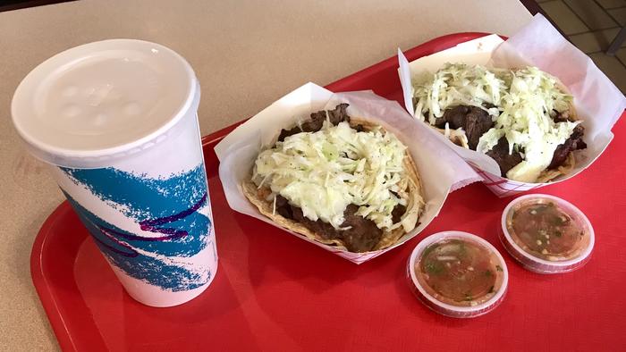 3.5美金的牛肉玉米饼,一大份鲜嫩的牛肉,搭配腌好的白菜和特制的玉米,10美金以下可以点两个玉米饼和一份饮料。