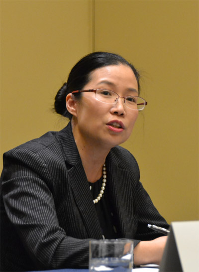 徐赛嫦律师事务所主任律师徐赛嫦,向来自家乡浙江的企业代表们介绍中资企业落地美国的法务要点