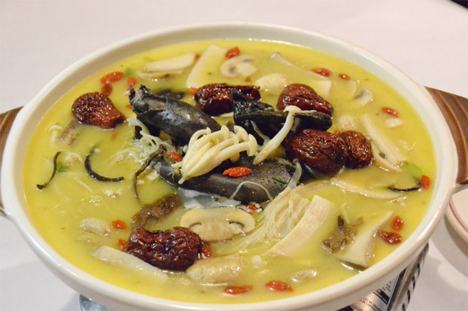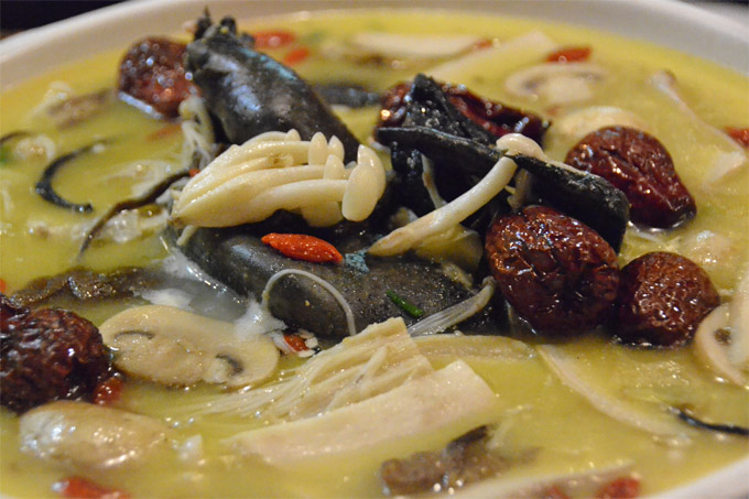 » 野生菌火锅的豪华顶配:松茸山珍菌乌鸡煲火锅