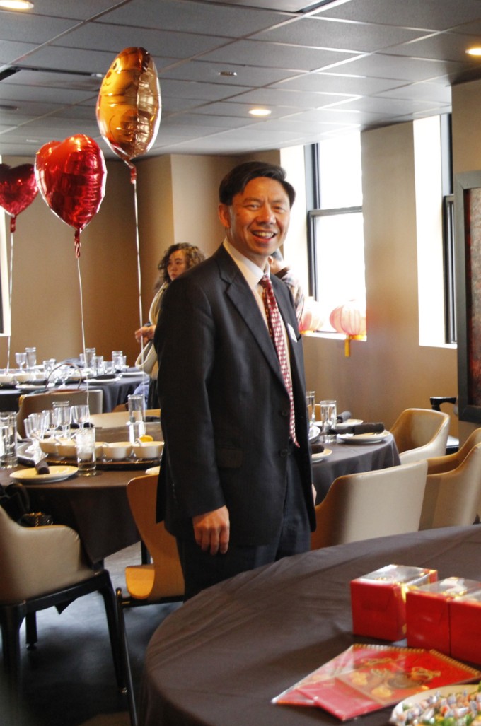中国驻芝加哥总领馆侨务组长卢晓晖、柳青领事,晓军美食集团董事长胡晓军,川渝同乡会会长、四川大学校友会会长任萍萍,川大副会长兼本次聚会主持人陈立翔,Morgan Stanley主管、武汉大学校友会副会长Jeff Li ,吉林大学校友会会长高勇,LOV SHOES创办人JENNY JIA等嘉宾出席了本次活动。