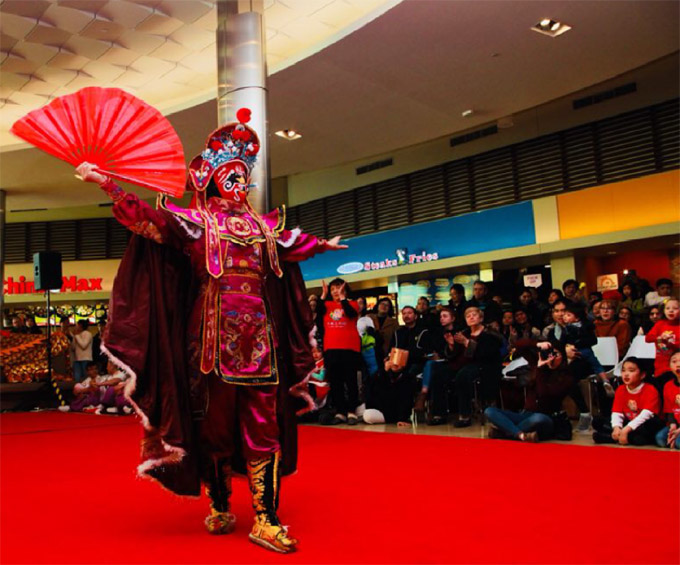 当天的新春游园活动,分文艺表演和游园活动两个区域。在游园活动摊位,义工们现场表演书法、美术,还有悠悠球杂刷,吸引了现场购物民众,大家无论老幼,对中国民俗文化表现出浓厚的兴趣。在文艺表演区域,由希林协会提供的灯笼、中国龙等特色装饰,让现场红红火火。华星艺术团等文艺团推带来的大合唱、双人扇舞、古筝独奏、四川变脸、杂技悠悠球、少林真功夫表演,轮番上阵,高潮迭起。