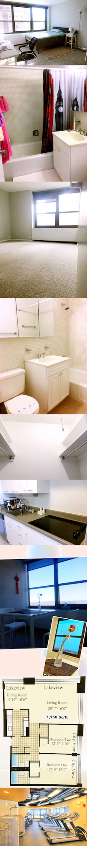 1130 S Michigan好房2B2B卧室出租,两个独立卫生间和衣帽间,卧室朝南阳光充足,270度超大湖景客厅,厨房封闭性很好。公共交通非常方便,下楼就是3路和4路,直通DePaul和密歇根大道,步行两分钟到红线, 1站到chinatown, 2站IIT;roosevelt交通枢纽换乘各路地铁,旁边29路直达navy pier和AMC river east 21, 公共交通发达非常适合在Downtown上班的朋友。luxury apartment室内设施很棒,中央空调,健身器材齐全,夏天室外烧烤,游泳池,超市购物非常方便,trader joe步行1分钟,walgreen2分钟,jewel osco4分钟,主卧室友是在DePaul上学的女生,人很nice爱干净,希望找到爱干净的室友,男女不限,总房租2258,B2房租1050/月,utility45, 此地段这个房价性价比极高。欢迎看房,微信494164174