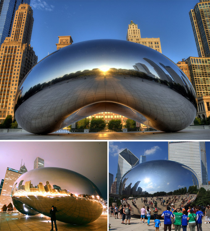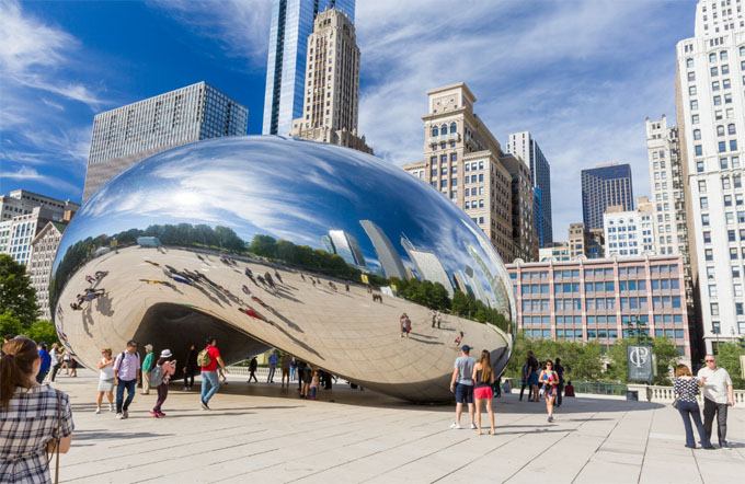芝加哥的云门(Cloud Gate),2006年建成,如今是芝加哥的地标性建筑