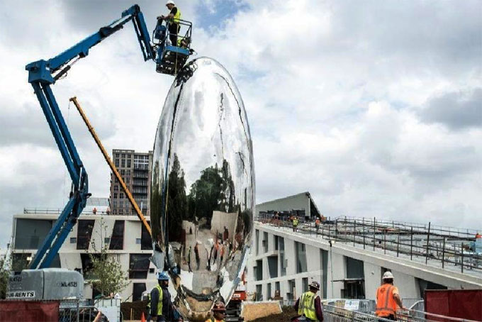 格拉赛尔艺术学院门口,本周一已基本完成安装工程。与芝加哥的“云门”的一样,休斯顿的“云柱”也是由英国雕塑家安尼希卡普(Anish Kapoor