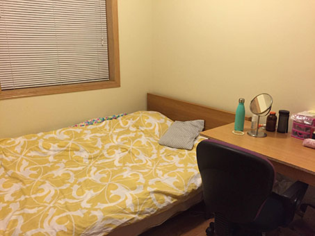 家具家电:豪华家电,2个冰箱,洗衣机,烘干机,洗碗机,微波炉等一应俱全,屋内有queen size的床,书桌、椅子,落地壁橱,宽敞容量大