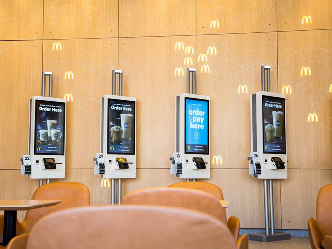 店内完全现代化风格,设置了多个麦当劳全新服务