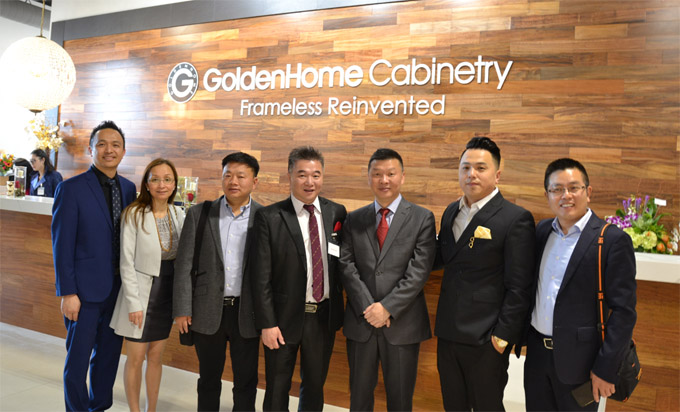 金牌橱柜是中国高档橱柜品牌,上市公司。厦门金牌橱柜股份有限公司董事长温建怀,率领金牌橱柜总部高层团队出席剪彩仪式。伊州联邦参议员拉贾为金牌橱柜美中中心仓的开业发来贺信。Elk Grove市政府商务主管Josh Grodzin,芝加哥福建商会副会长陈明锋,芝城华商会会长徐佐寰,美国华人联合会伊州分会主席陈健, 芝加哥香港华协会荣誉会长朱庆龙等华裔社区代表出席开张仪式,并热烈道贺。