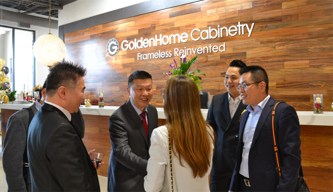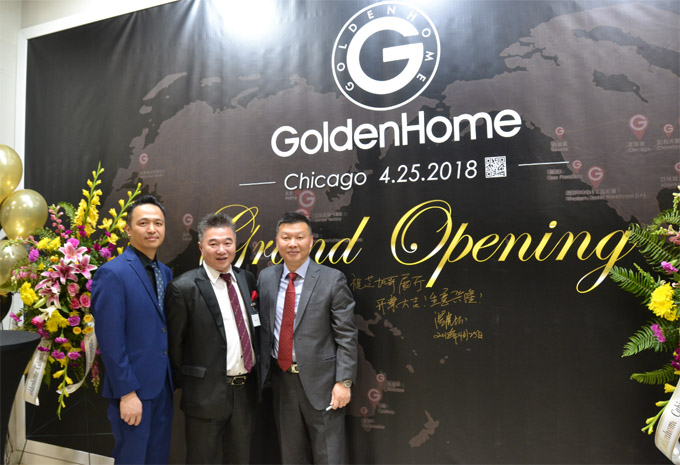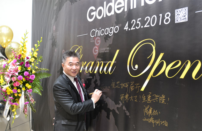 在开业典礼上,温建怀董事长向大家介绍了金牌橱柜的发展历程与拓展北美等海外市场的发展战略。温建怀指出,金牌橱柜总部团队的美国之行,昨天刚刚见证了西雅图金牌橱柜公司的开业,今年又为芝加哥金牌橱柜剪彩,这些都是进一步拓展北美市场的新举措。本次美国之行,总部团队还有意考察在美国构建服务中心、在美国建厂的可能性。