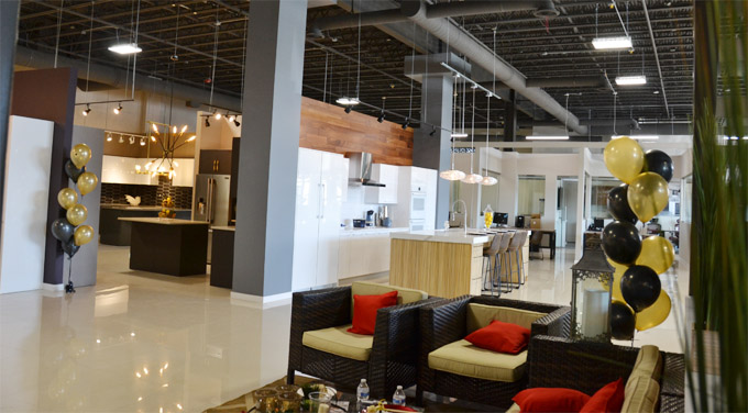 全新开张的金牌橱柜美国中部中心仓,位于芝加哥西北郊Elk Grove市,毗邻O’Hare国际机场,在作为交通枢纽的芝加哥地区形成辐射美国中西部地区的大本营。新开业的金牌橱柜美中中心仓,总面积7.5万平方英尺,展厅面积高达2万平方英尺。