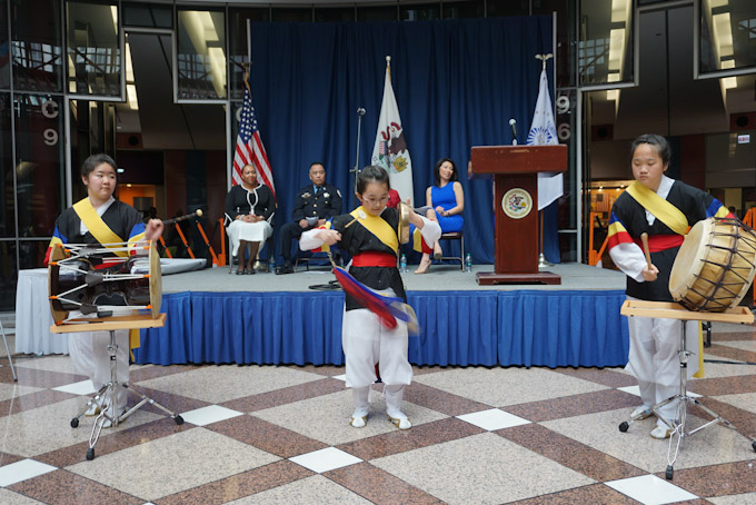 【芝加哥侨学网记者 王一 报道】伊州州长办公室5月3日在州政府大楼(The James R. Thompson Center)隆重举办伊利诺伊亚裔月颁奖典礼,