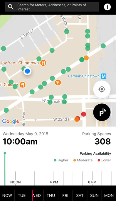 据悉,该应用提供的车位忙闲状况并非实时数据,而是根据停车管理公司近4年来收集的数据为基础进行的大数据分析,该手机应用程序会根据你的目的地附近咪表的使用数据做出分析,并进行预测。芝加哥街边停车管理公司的总裁Dennis Pedrelli表示,应用中提供的信息希望可以帮助市民做好出行准备,如果他们发现某一时段目的地附近的街趴十分繁忙,他们可以选择乘坐公共交通或是预先找好车库。