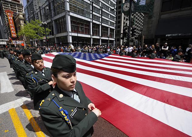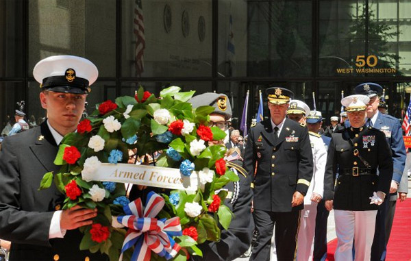 为纪念美军阵亡将士,芝加哥市政府将在本周六(5月26日)举行国殇节游行(Memorial Day Parade)。5月26日上午11时,将首先在市中心戴利广场(Daley Plaza,Dearborn & Washinton St.)举行献花仪式。游行将从当日中午12时开始,从Lake St & State St路口出发,沿State St. 南行至Van Buren St。芝加哥市的国殇节游行,自1870年以来每年都举办,如今已是全美规模最大的国殇节游行之一。国殇节游行免费开放,观看游行的民众鼓励乘坐公共交通。