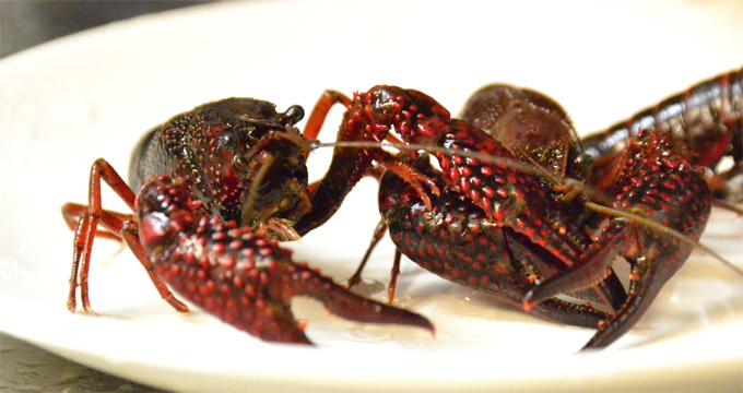 川菜大厨杨师傅介绍,鲜活的小龙虾从超市买回来,要先用清水精养来两三天。客人点了麻辣小龙虾,帮厨就会从捞出清水静养过的小龙虾,仔细清洗过,再过两道清水冲刷。遇到水龙头高压冷水的刺激,小龙虾个个舞起大钳,暗红的体色瞬间提高鲜亮度,足见小龙虾之威猛。
