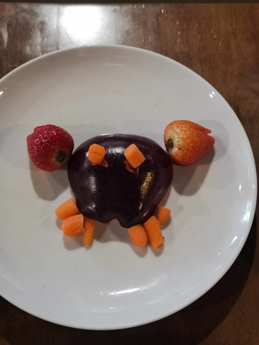 最简单的苹果,草莓和胡萝卜做成的螃蟹