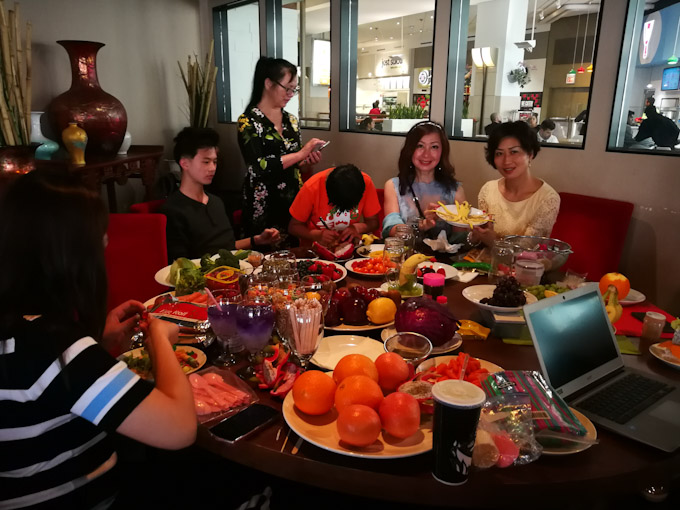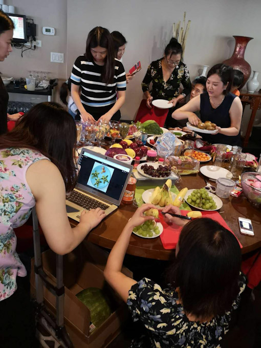 活动中用的水果和蔬菜以及食材和工具,都是由Lady One的Elaine和Chicago Girls Time的Jenny精心挑选的。参加的朋友说,这是感觉把整个超市的水果和蔬菜都搬来了啊!一定要点一个赞!据Elaine透露,买这些食材去了三个超市,花了很长的时间,挑选了最好最新鲜的水果和蔬菜。