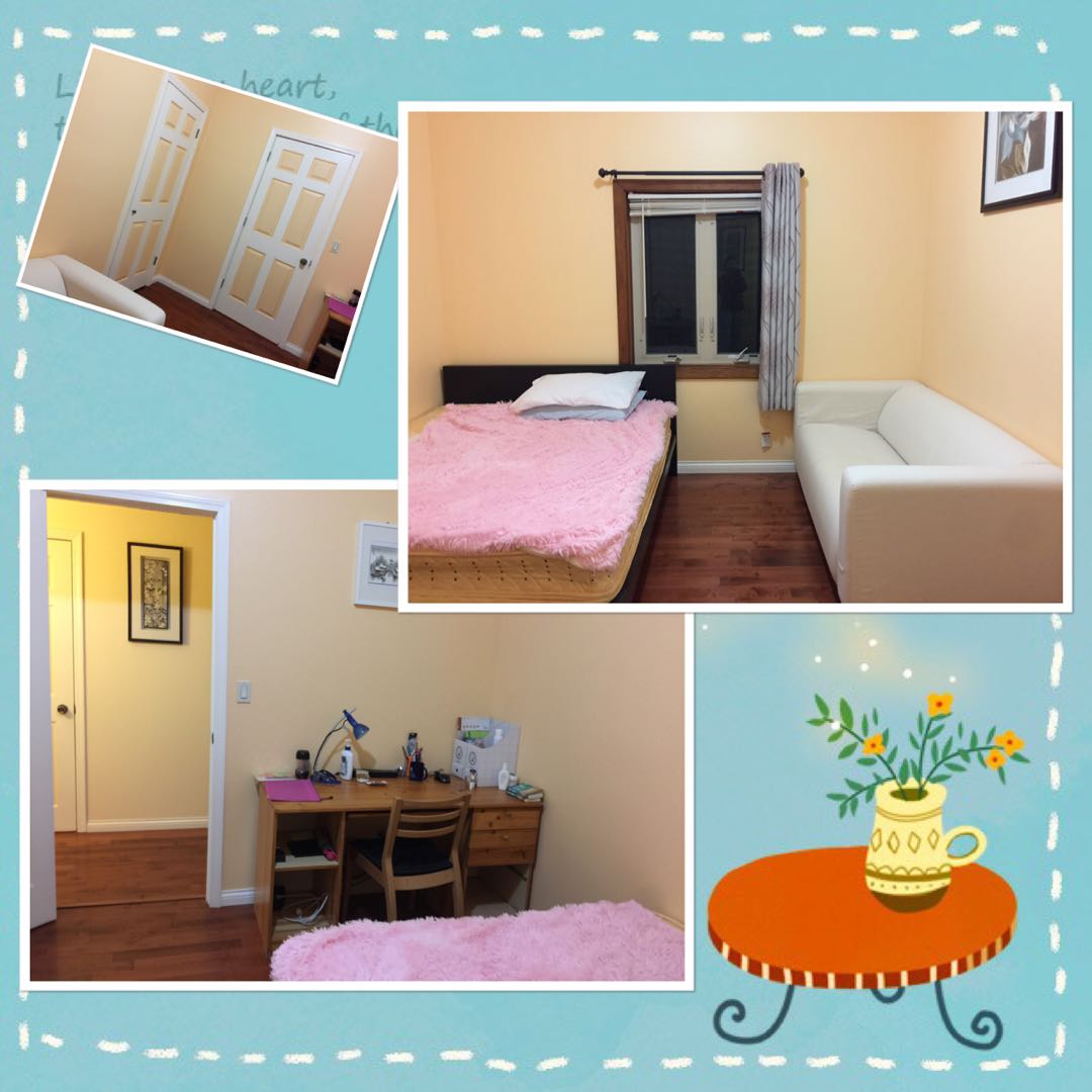 房屋是三卧室,现出租两间卧室,房屋结构:两个卫生间(一大一小卫生间),两个厅(一个客厅一个饭厅),一个厨房。卧室床,衣柜和家俬齐全;中央冷暧气,冰箱,炉具,洗衣机干机衣一应俱全,拎包入住。现寻找两名爱干净和注意安全的女生分租。$550 煤,电,水和网络全包,七月一号起租。