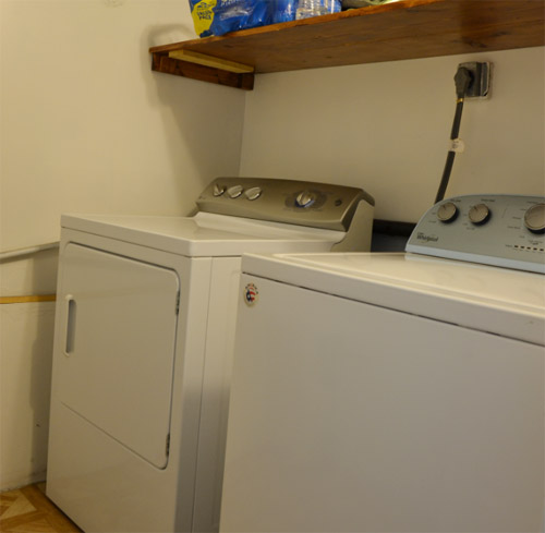 木地板、中央空调(冷暖兼备),大冰箱、炉头、洗碗机,洗衣机、烘干机一应俱全。有沙发、床垫床架、餐桌椅,基本可拎包入住。