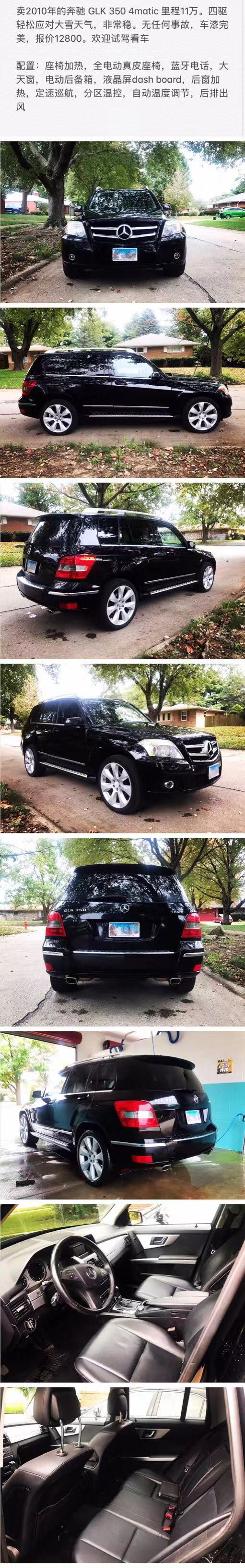 卖2010年的奔驰 GLK 350 4matic 里程11万。四驱轻松应对大雪天气,非常稳。无任何事故,车漆完美,报价12800。欢迎试驾看车