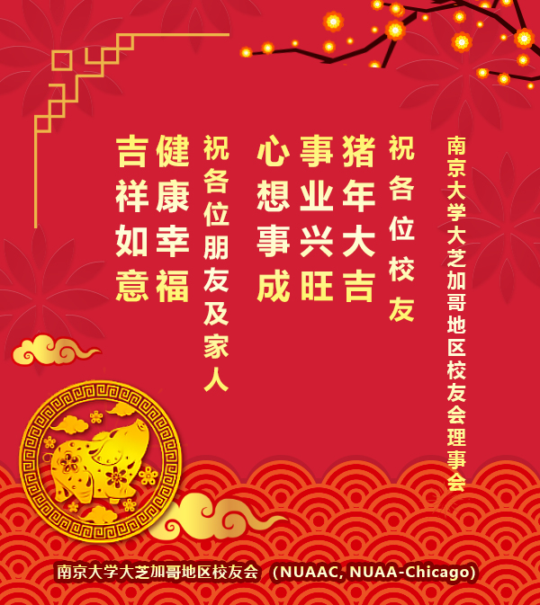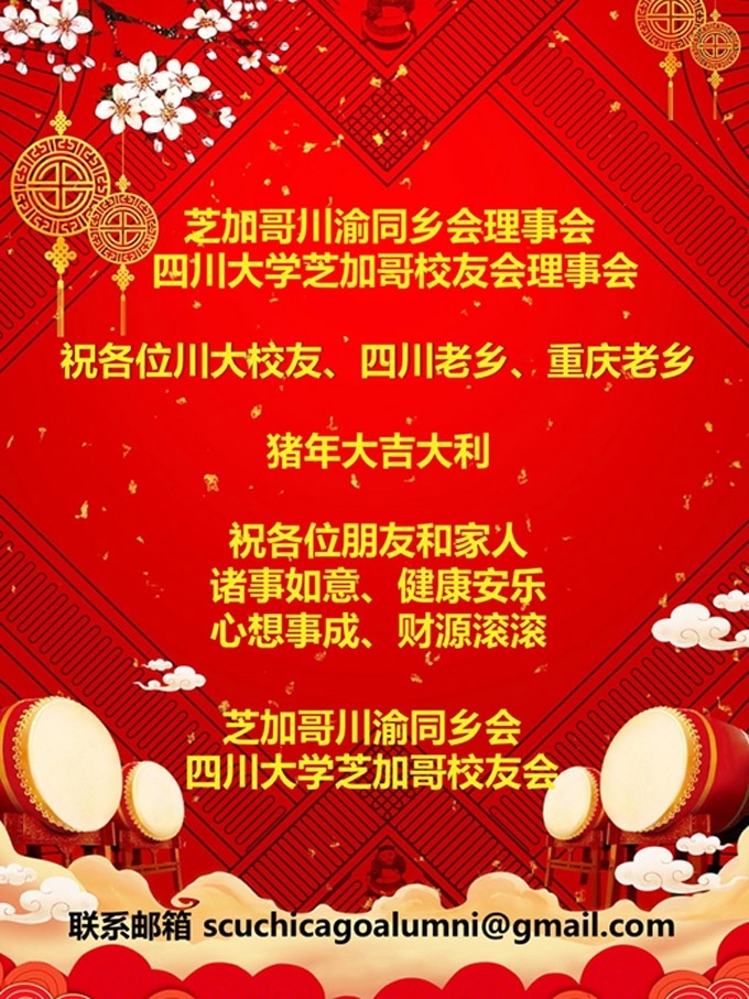 scuchicagoalumni@gmail.com再次给您和您的家人拜年!祝你们猪年大吉大利,健康安乐,心想事成,福运连连,财源滚滚!