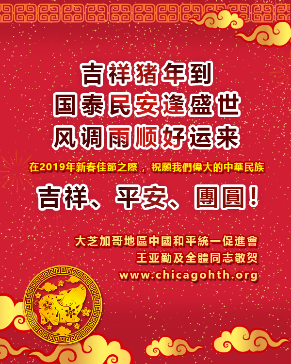 大芝加哥地區中國和平統一促進會王亚勤及全體同志敬贺