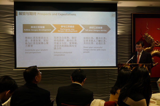 江苏省委常委、江苏省海外联谊会会长杨岳为以“聚力新江苏 奋进新时代”为主题的‘’2019 江苏发展大会‘’做推介